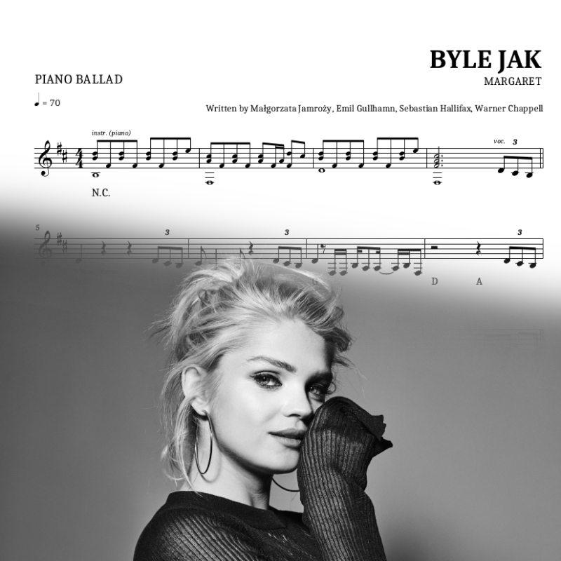 „Byle jak” to emocjonalny utwór Margaret, w którym artystka prezentuje swoje bardziej refleksyjne oblicze. Kompozycja opiera się na prostych, ale przejmujących akordach, które świetnie brzmią na keyboardzie. Melancholijna melodia i wyrazisty przekaz czynią tę piosenkę interesującym wyborem dla osób poszukujących spokojniejszych aranżacji.